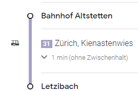 Ab Bahnhof Altstetten, mit der Buslinie 31 in Richtung Kienastenwies: