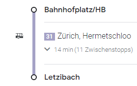 Ab Zürich Hauptbahnhof, mit der Buslinie 31 in Richtung Hermetschloo: